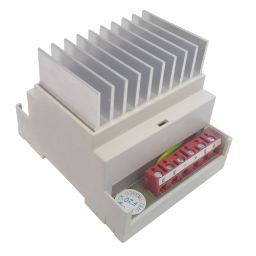 Connection of the products REET6 - flow controller and REE6 - triac controller into one switchboard with four grommets for wiring. The controllers are in standard module boxes, mounted on a DIN rail and connected with the necessary cabling. The enclosure is IP55 rated (subject to installation conditions).