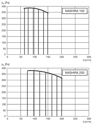 - NASHIRA 200 až 325 Pa při maximálním průtoku 200 m³/h