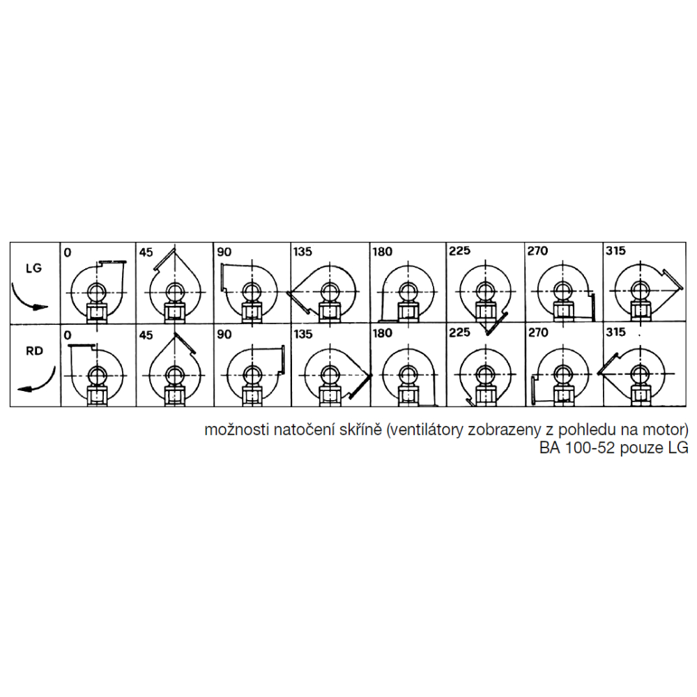 2, 4 oder 6 poliger ein- oder dreiphasiger Asynchronmotor, Isolationsklasse F, fettgefüllte Kugellager auf Lebensdauer. Der Motor befindet sich außerhalb des Luftstroms. Schutzart IP55. Auch für explosionsgefährdete Bereiche erhältlich (auf Anfrage).