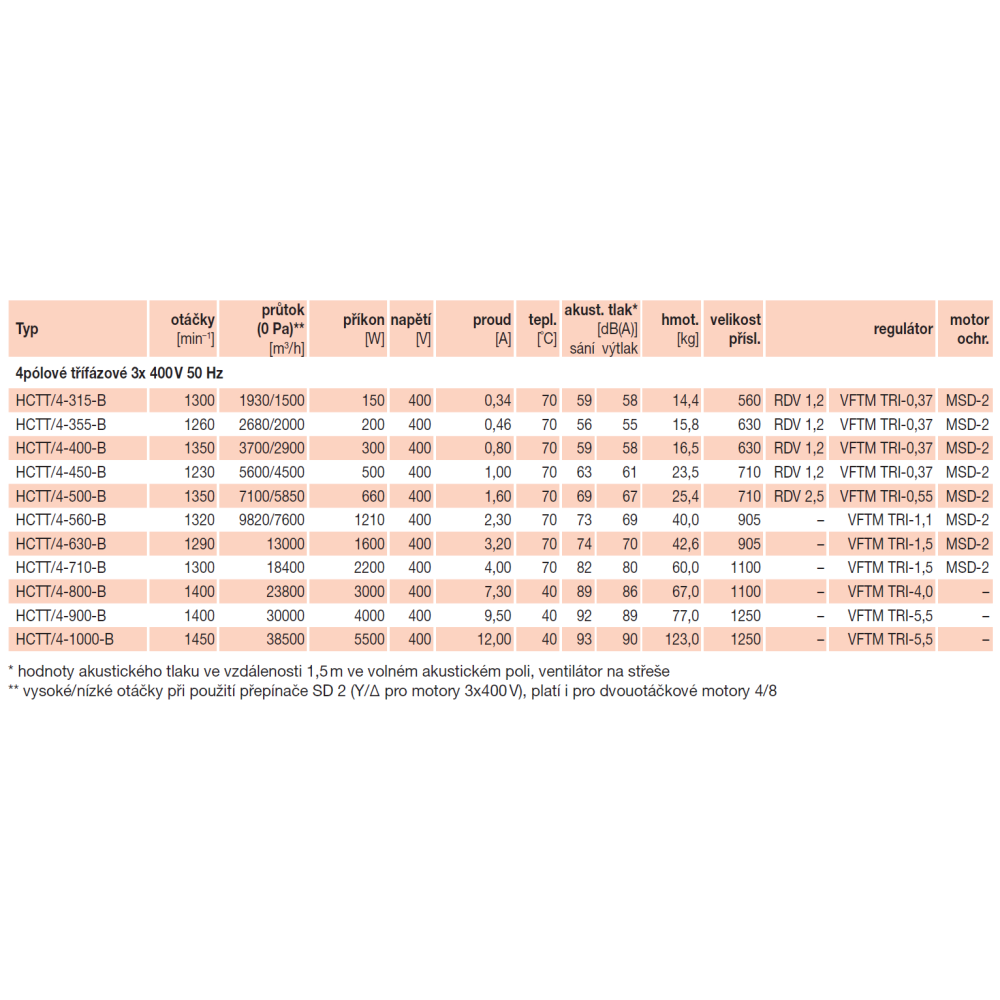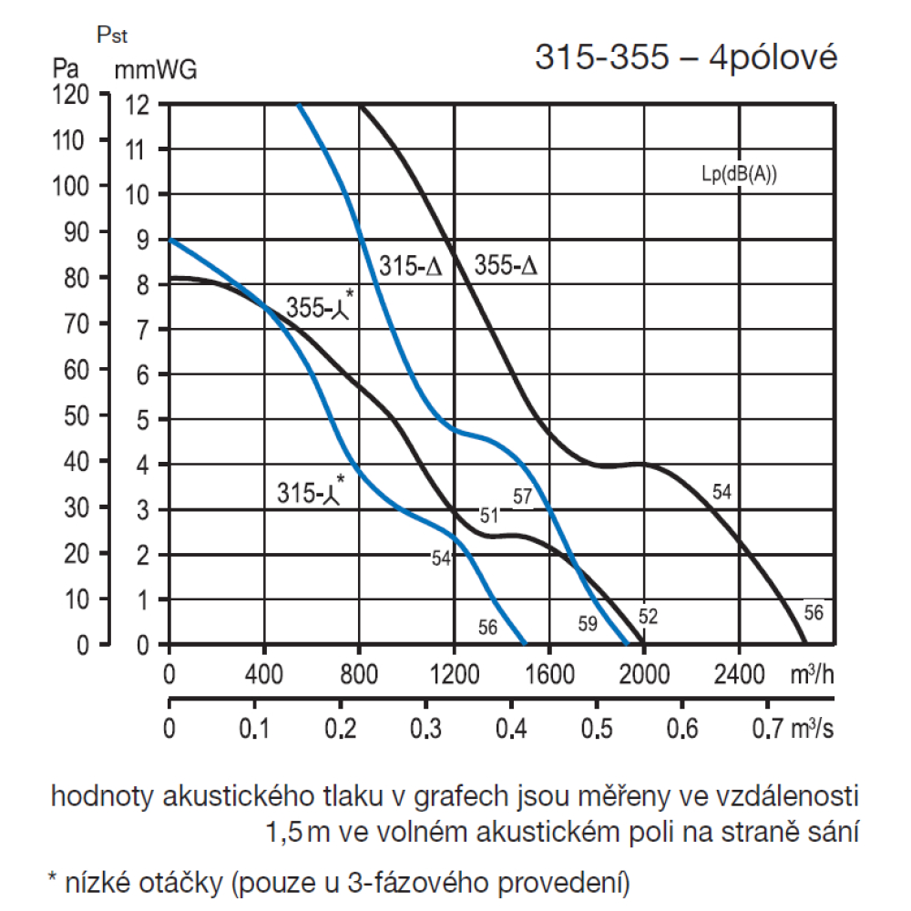 Die vom Ventilator abgestrahlten Geräusche sind in den Tabellen als Schalldruckwerte in 1,5 m Entfernung angegeben, gemessen im freien Schallfeld.