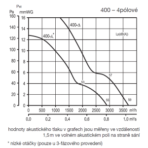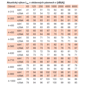 Die vom Ventilator abgestrahlten Geräusche sind in den Tabellen als Schalldruckwerte in 1,5 m Entfernung angegeben, gemessen im freien Schallfeld.