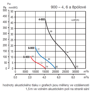 Die vom Ventilator abgestrahlten Geräusche sind in den Tabellen als Schalldruckwerte in 1,5 m Entfernung angegeben, gemessen im freien Schallfeld.