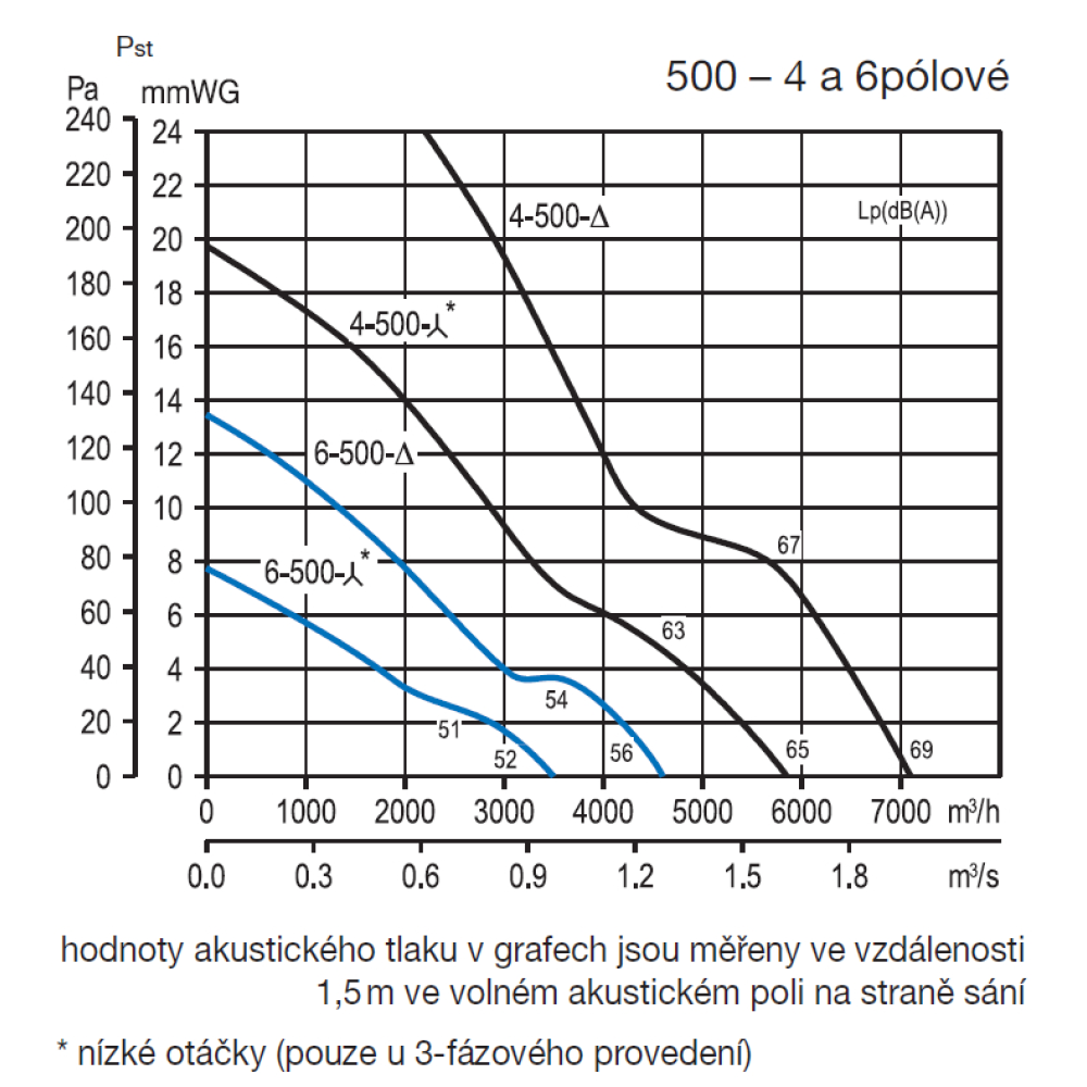 Die vom Ventilator abgestrahlten Geräusche sind in den Tabellen als Schalldruckwerte in 1,5 m Entfernung angegeben, gemessen im freien Schallfeld.
