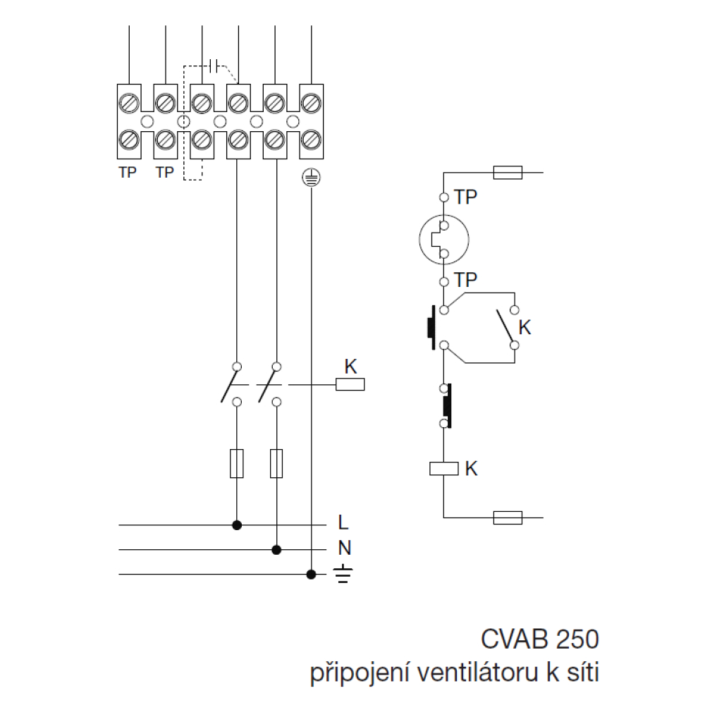 CVAB fan motors are 1-phase for 230 V, CVAT motors are 3-phase for 230/400 V or 3-phase for 400 V. The motors are equipped with thermal protection. Sealed maintenance-free ball bearings with grease packing for life. IP55 protection, class F insulation, standard operating temperature -20 °C to +40 °C, selected types -40 °C to +60 °C.