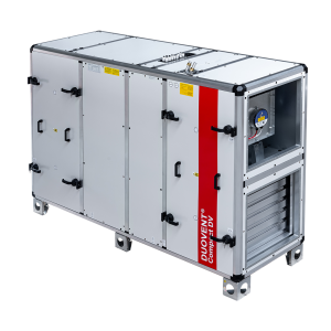 Depending on the design, the unit is equipped with a water or electric air heater. For summer air cooling needs, a water cooler or direct evaporator is fitted. For the needs of bivalent heating, the evaporator can be manufactured in a reversible design. Evaporators are designed for R410A and R32 refrigerant as standard. Water heaters and condensers have copper tubes and aluminium fins in a galvanised steel frame as standard. The heat exchangers can be provided with additional corrosion protection for higher corrosion protection needs. The electric heaters have smooth heating rods as standard and are equipped with an operating thermostat with a starting temperature of 60 °C and an emergency thermostat with manual reset and a starting temperature of 120 °C.