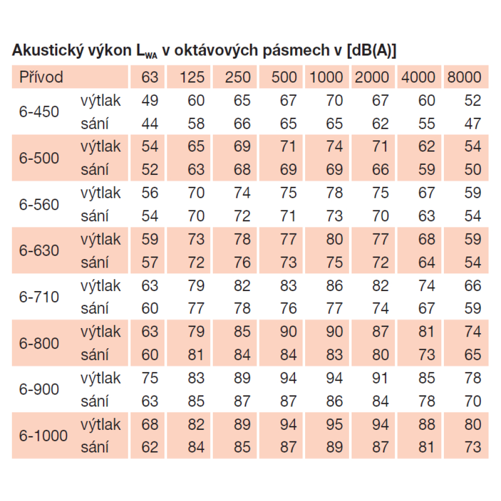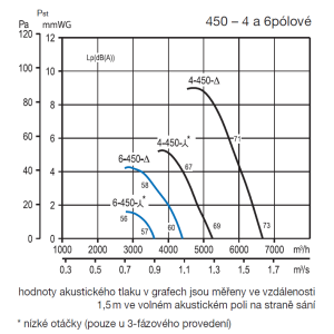 emitted by the fan is given in the tables as sound pressure values at a distance of 1.5 m, measured in the free sound field.