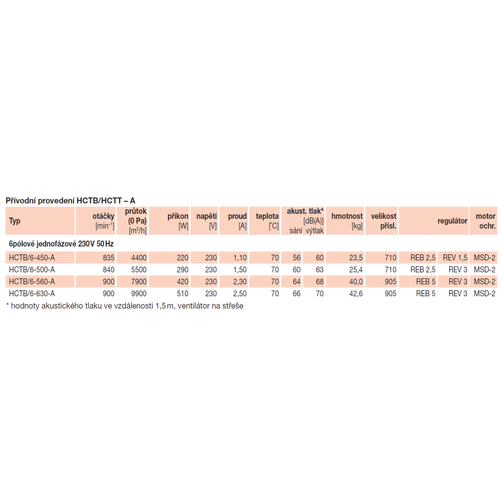 emitted by the fan is given in the tables as sound pressure values at a distance of 1.5 m, measured in the free sound field.