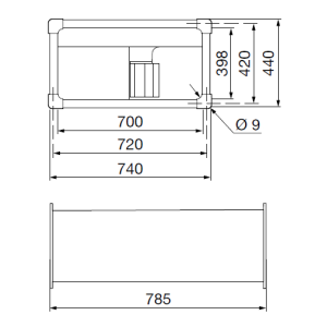 It is made of galvanized steel sheet, the cabinet is equipped with flanges for fixing to the square pipe. There is a revision cover on the casing, which, when removed, gives access to the motor and impeller.