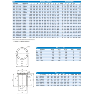 Single suction radial fan with direct motor. Made of steel sheet protected with cataphoretic primer and polyurethane varnish, RAL 7045. Designed for continuous operation, air temperature from -20 °C to +60 °C.