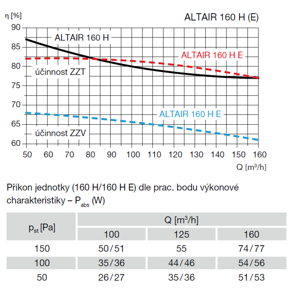 Protiproudý deskový tepelný výměník dosahuje účinnosti ZZT 88 % (ALTAIR 120 H) nebo 87 % (ALTAIR 160 H). Verze s entalpickým výměníkem 120 H E dosahuje účinnosti ZZT 85 % a účinnosti ZZV až 73 %, u verze 160 H E dosahuje účinnost ZZT 84 % a účinnost ZZV 66 %.