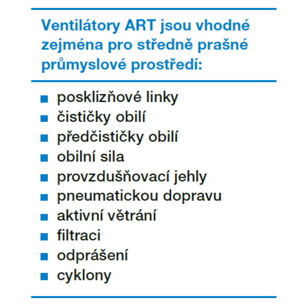 Jednostranně sací radiální ventilátory pro středně prašné průmyslové prostředí.