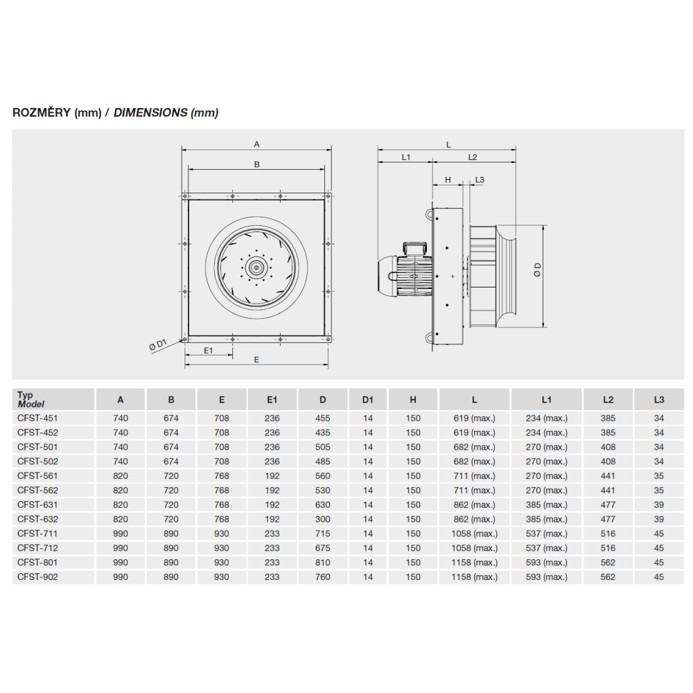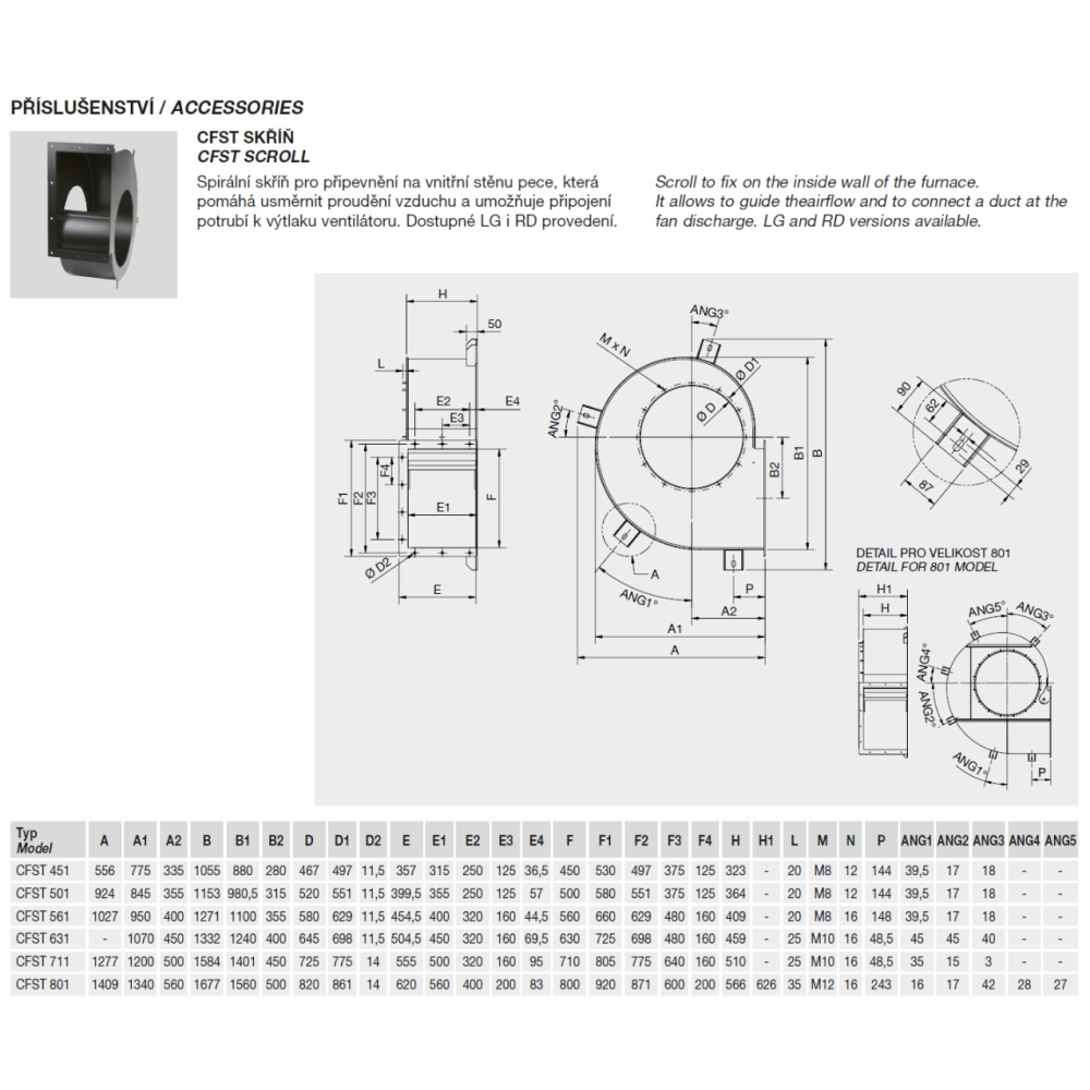 Radiální ventilátory určené k transportu horkého vzduchu v pecích a pro trvalý provoz až do 180 °C.