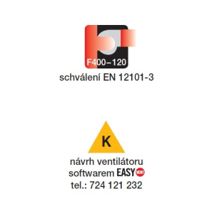 je asynchronní 3-fázový pro napětí 230/400 V nebo 3-fázový pro napětí 400 V, dle výkonu. Ventilátory jsou certifikovány pro případ požáru jednorázově F400 (120). Krytí IP55, třída izolace H. Na speciální objednávku jsou k dispozici i dvourychlostní motory.