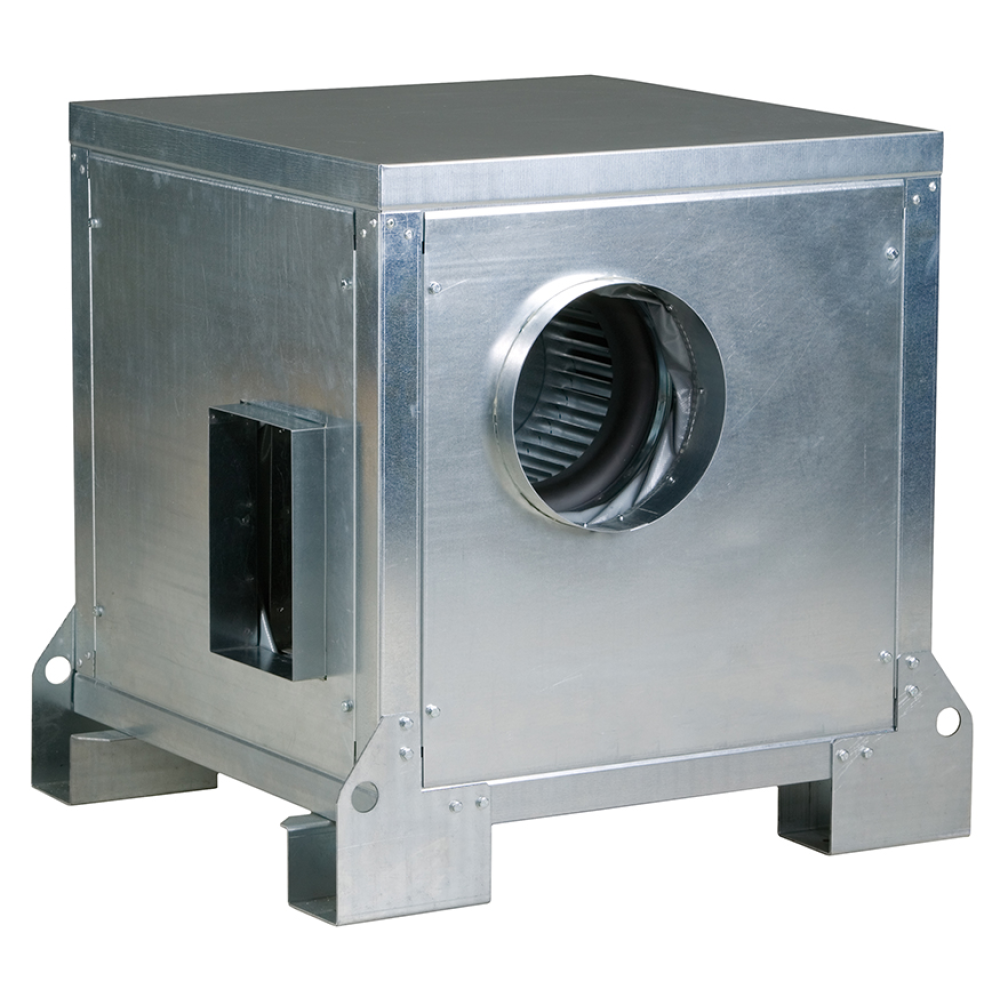 je z ocelového, galvanicky pozinkovaného plechu. Skříň je uvnitř opatřena 7 mm vrstvou zvukově izolující pěny. Ve spodní části jsou montážní patky pro uchycení ventilátoru k podlaze nebo stropu. Na skříni jsou kruhová hrdla s pružnou spojkou pro připojení flexibilních hadic nebo kruhového potrubí.