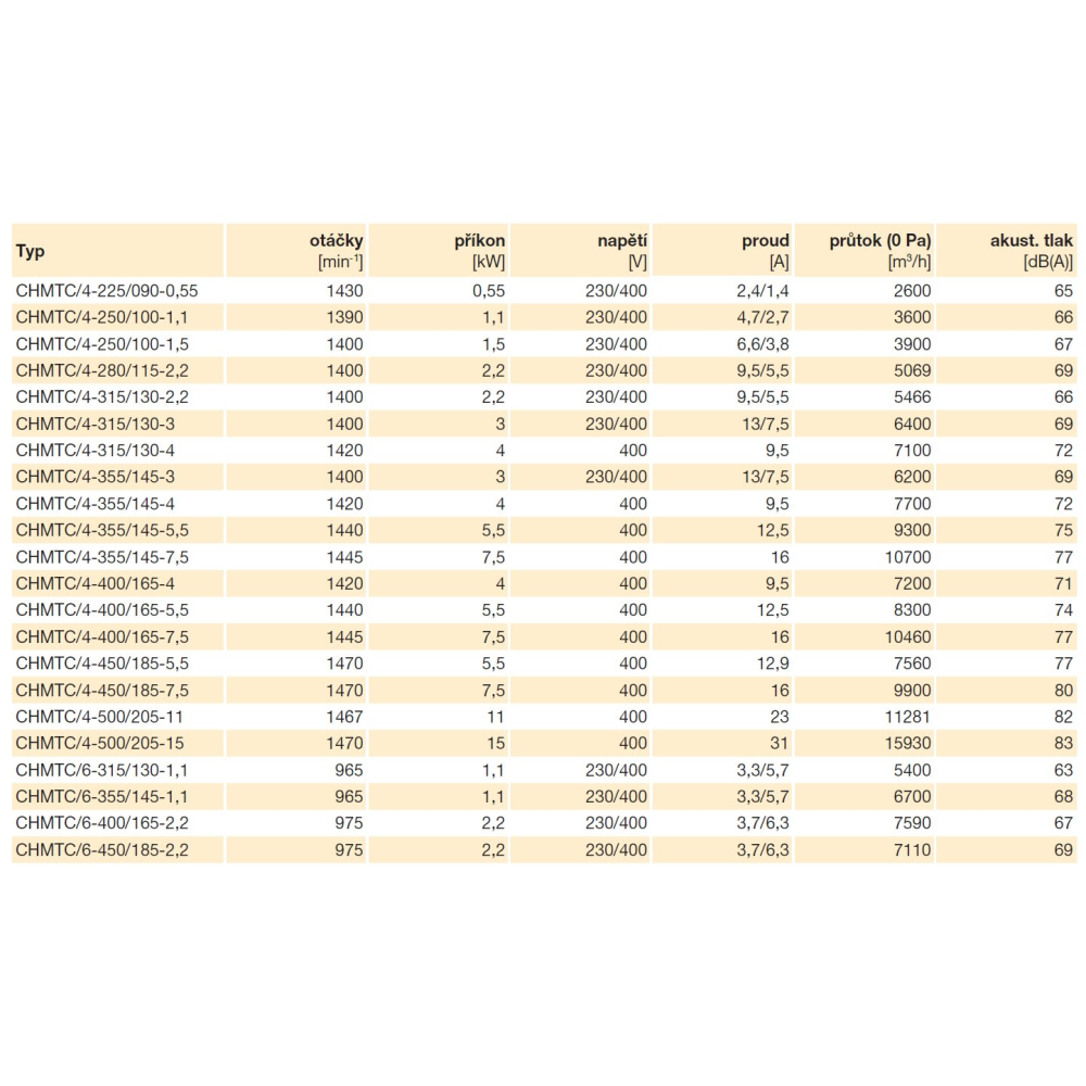 CHMTC/4-400/165-7,5 kW IP55 požární radiální ventilátor