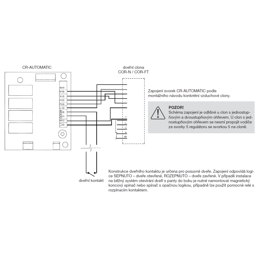 Ovladač vzduchové clony CR-AUTOMATIC ovládá rychlost otáček ventilátoru a výkon ohřívače v závislosti na otevření automatických dveří.