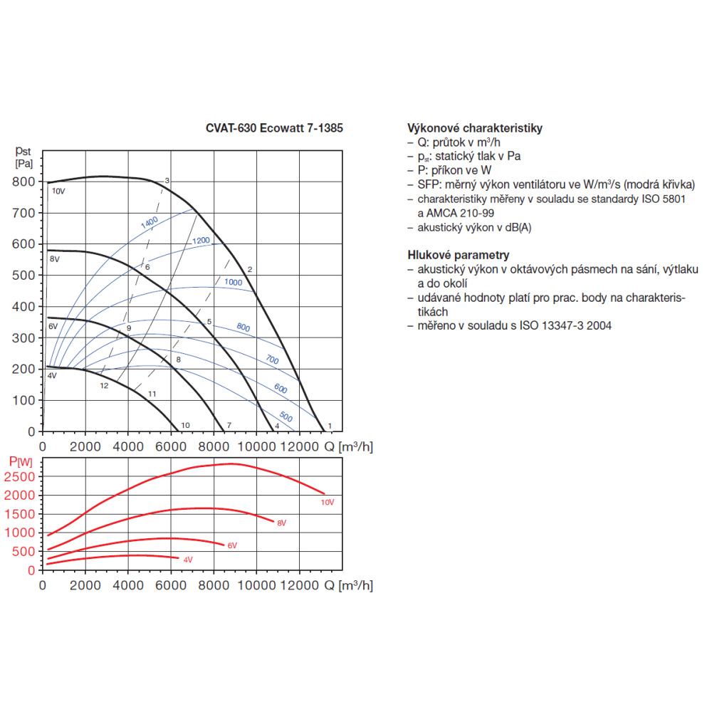 EC motor s tepelnou ochranou proti přetížení. Pracovní teplota -20 až +40 ºC. Motory ventilátorů CVAB jsou 1-fázové pro napětí 230 V, CVAT jsou 3-fázové pro napětí 400 V. Krytí IP44 (CVAB) nebo IP54 (CVAT).