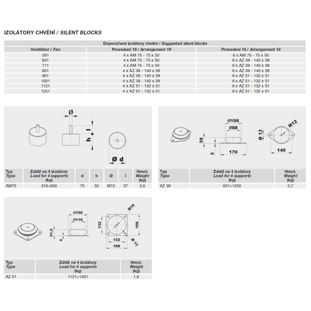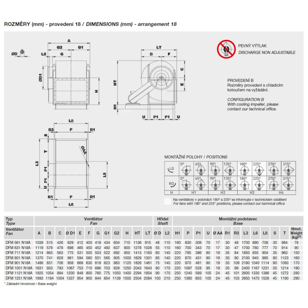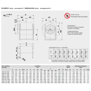 • PROVEDENÍ 18: Stejné jako provedení 6, ale ventilátor a motor na společném rámu.
