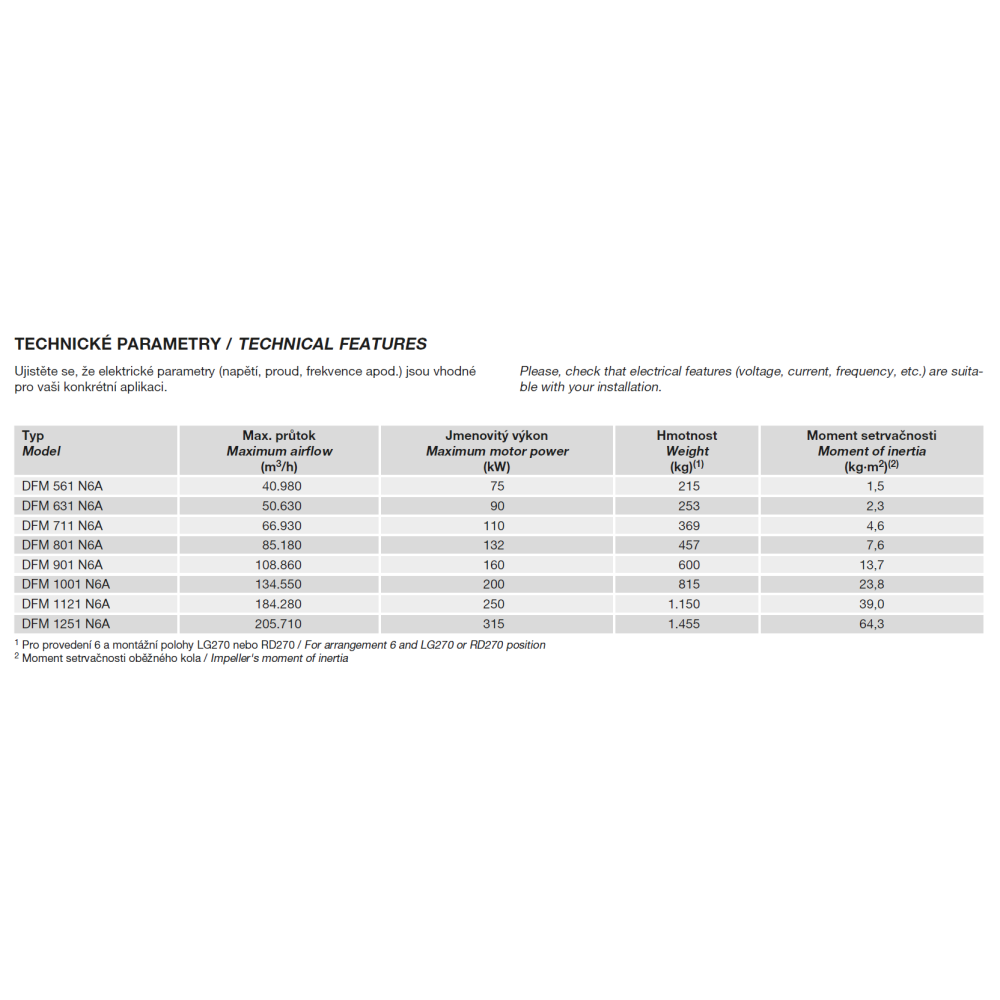 Oboustranně sací radiální ventilátor s motorem na řemen nebo na spojku. Vyroben z ocelového plechu chráněného kataforezním základním nátěrem a polyuretanovým lakem. Navržen pro trvalý provoz, teplota přepravované vzdušiny od -20 °C do +40 °C (do +60 °C v případě použití ložisek C3).