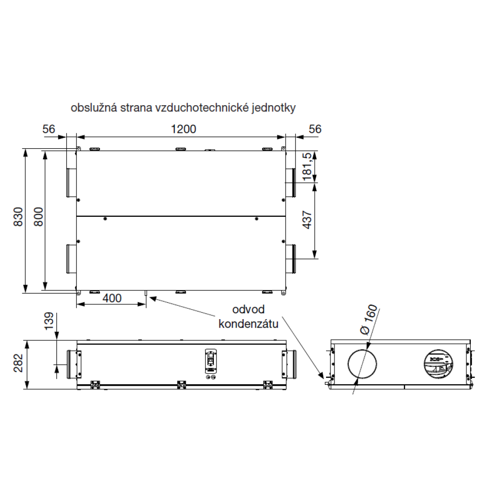 je samonosné konstrukce a je vyrobena z panelů o tloušťce 25 mm s izolací z polyuretanové pěny. Skříň a vnitřní části jsou vyrobeny ze speciálního materiálu ALUZINC®, který je vysoce odolný proti korozi a má atraktivní vzhled. Třída vzduchotěsnosti 2. Vstupní a výstupní hrdla o průměru 160 mm pro připojení potrubí. Revizní přístup je umístěn z boku skříně.