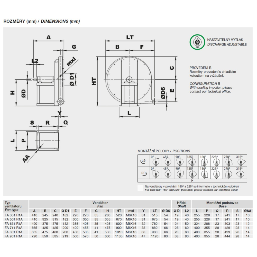 • vysokoteplotní provedení (až do 300 °C, provedení B s chladicím kotoučem)
