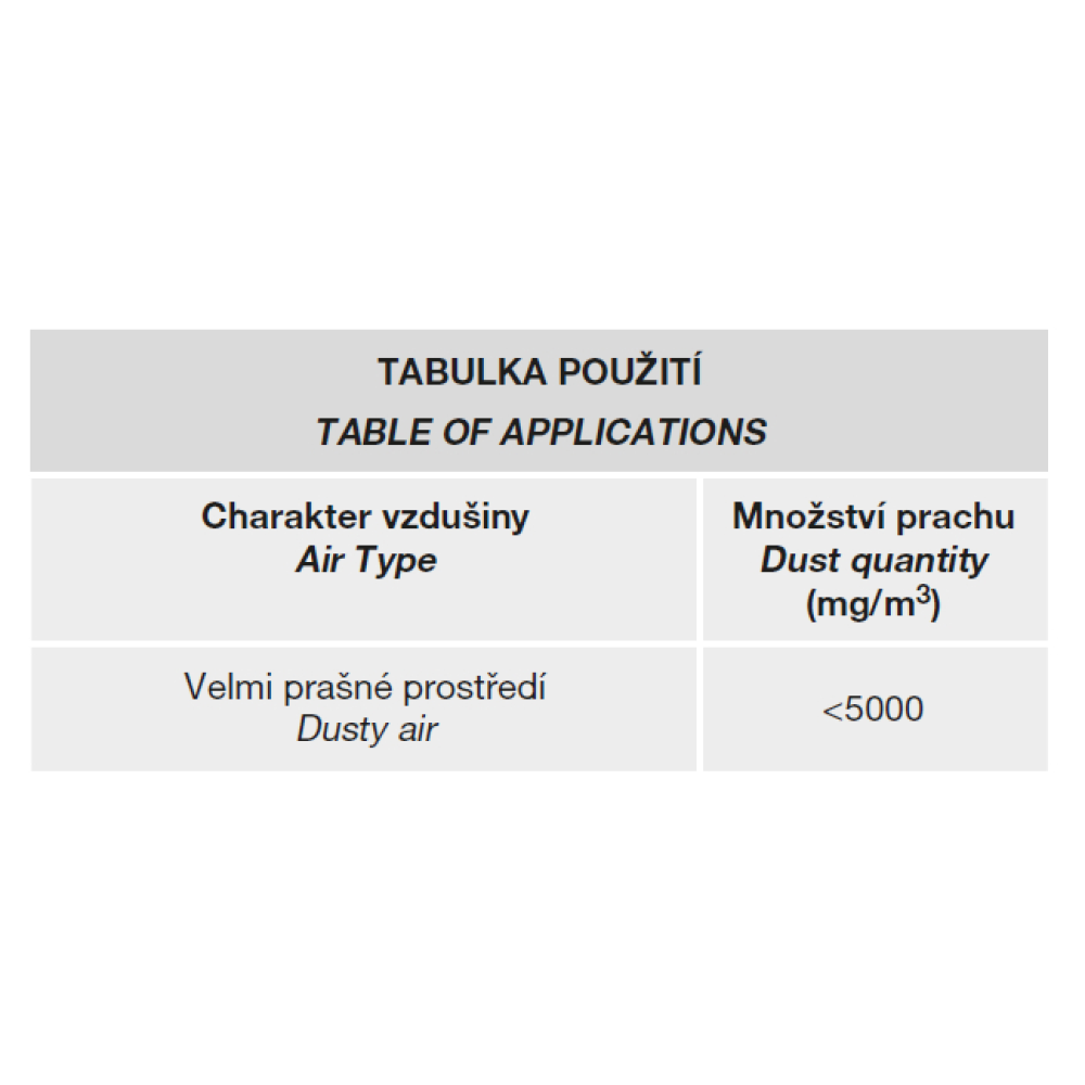 • Vodivý prach (povinný motor IP65):