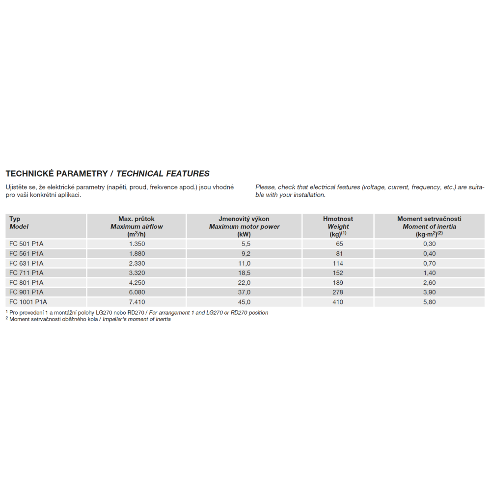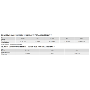 2, 4 nebo 6pólové, IE 3 s vysokou účinností (od 0,75 kW může být motor IE 2 a řízen frekvenčním měničem), třífázové provedení 230/400 V, 50 Hz do velikosti motoru 132. Pro velikosti motoru nad 132 400/690 V, 50 Hz. Krytí IP55, izolace třídy F.