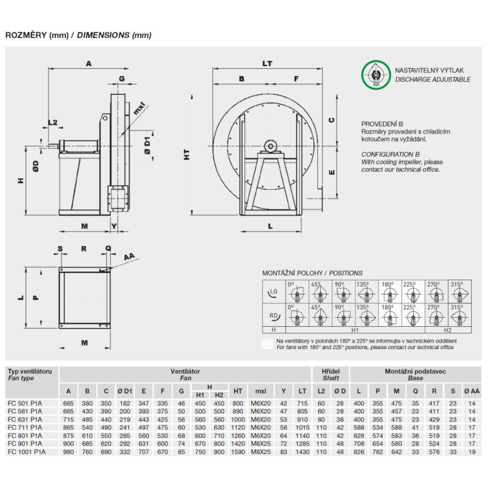 • vysokoteplotní provedení (až do 300 °C, provedení B s chladicím kotoučem)