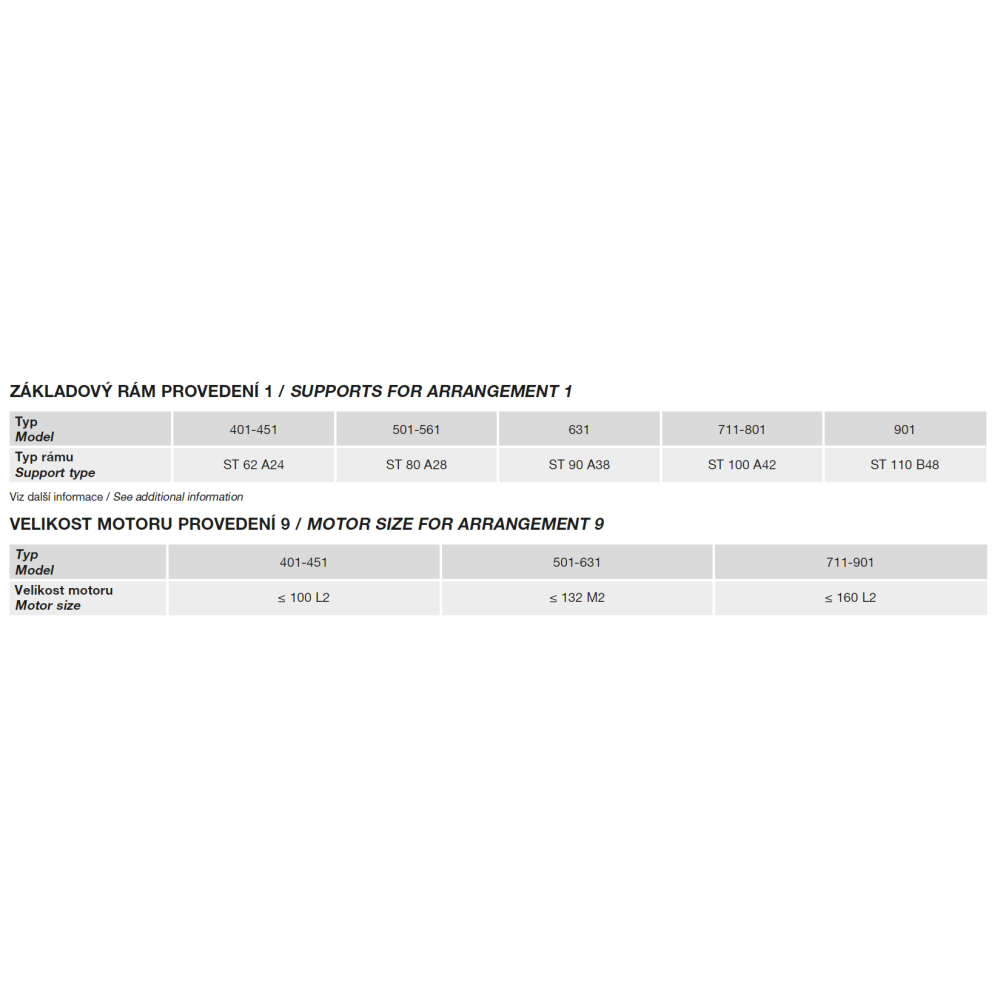 2, 4 nebo 6pólové, IE 3 s vysokou účinností (od 0,75 kW může být motor IE 2 a řízen frekvenčním měničem), třífázové provedení 230/400 V, 50 Hz do velikosti motoru 132. Pro velikosti motoru nad 132 400/690 V, 50 Hz. Krytí IP55, izolace třídy F.