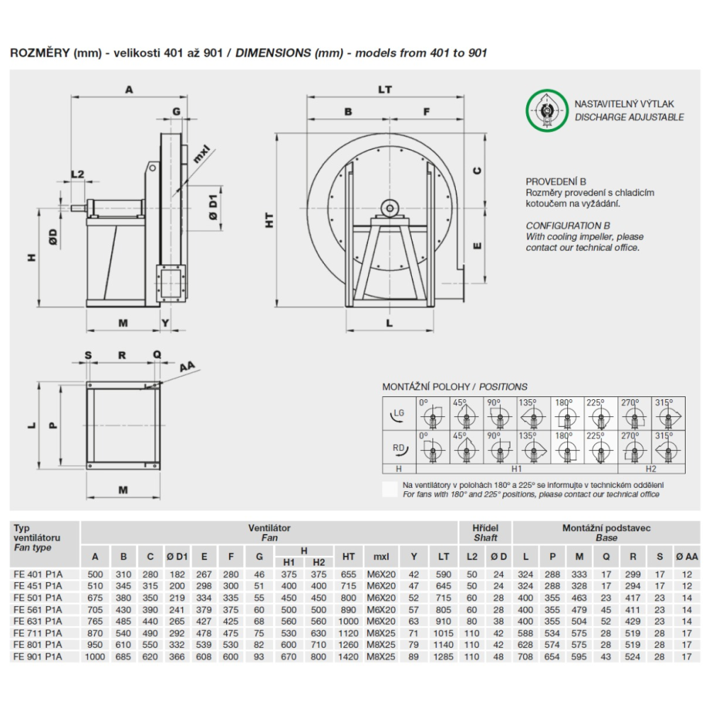 Jednostranně sací radiální ventilátor s motorem na řemen. Vyroben z ocelového plechu chráněného kataforezním základním nátěrem a polyuretanovým lakem. Navržen pro trvalý provoz, teplota přepravované vzdušiny od -20 °C do +60 °C.