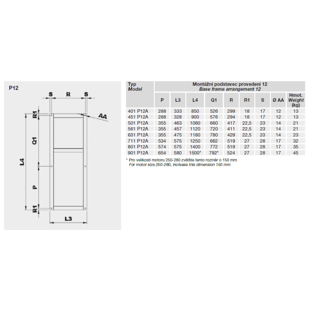 • PROVEDENÍ 12: Obsahuje motor, řemenice, řemeny a ochranný kryt. Motor umístěný na montážním podstavci.