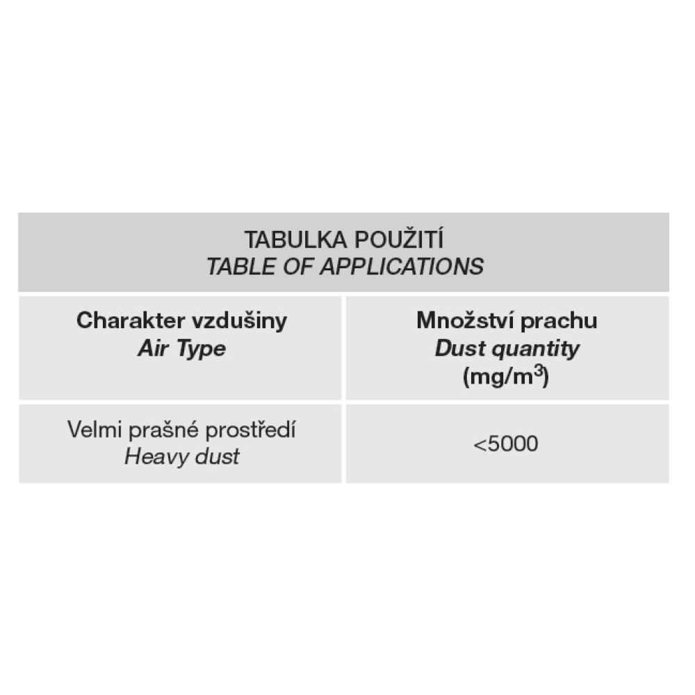 • Vodivý prach (povinný motor IP65):
