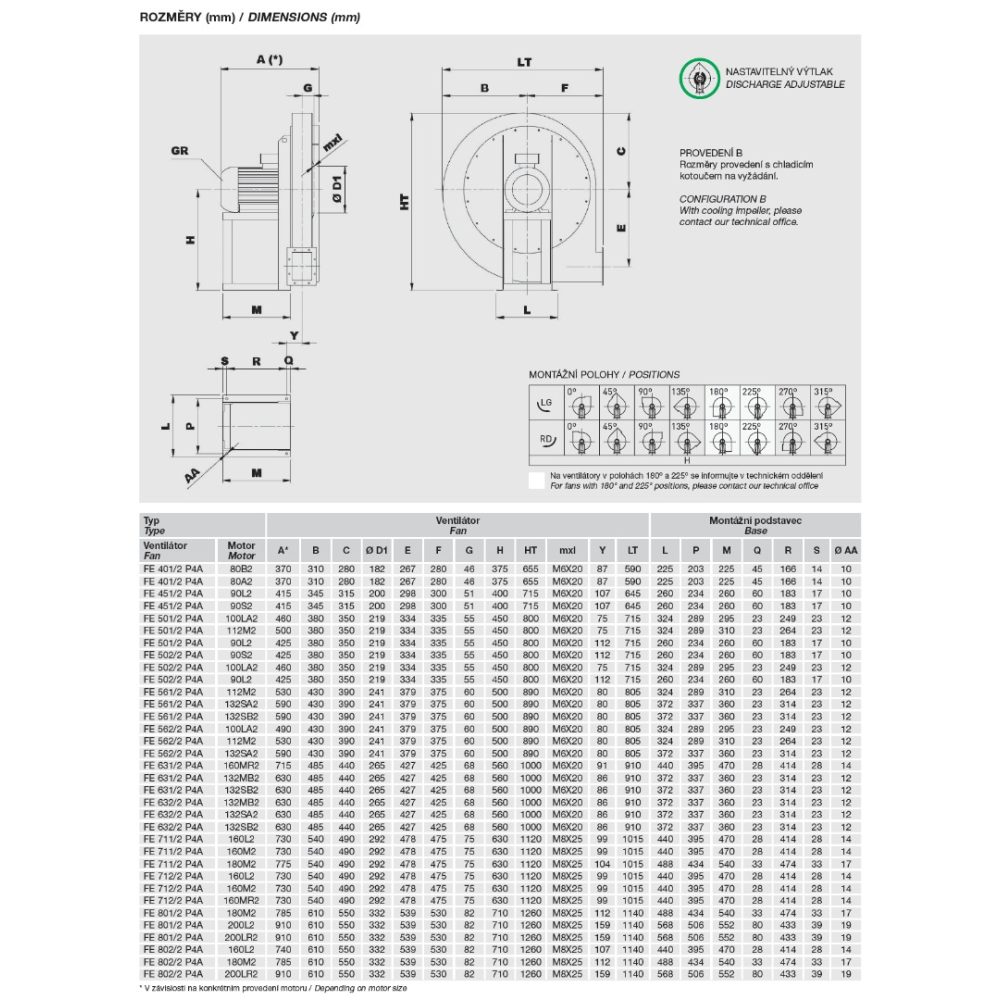 • ventilátor bez podstavce (provedení 5) do velikosti motoru 160