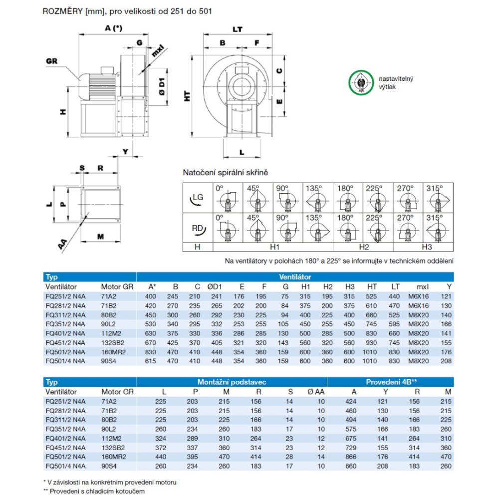 FQ 251/2 N 0,37kW radiální ventilátor s pohonem napřímo
