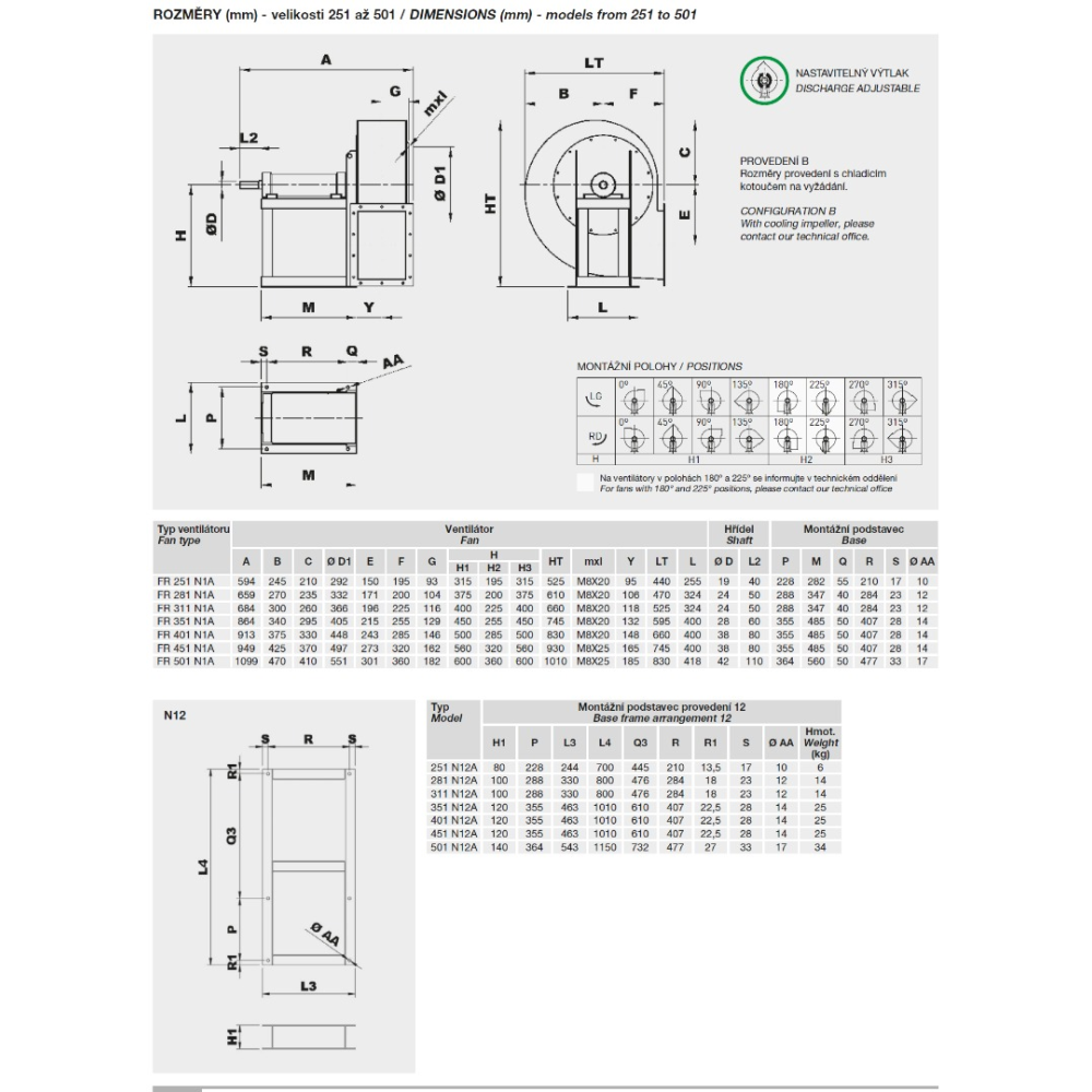 Jednostranně sací radiální ventilátor s motorem na řemen. Vyroben z ocelového plechu chráněného kataforezním základním nátěrem a polyuretanovým lakem. Navržen pro trvalý provoz, teplota přepravované vzdušiny od -20 °C do +60 °C.