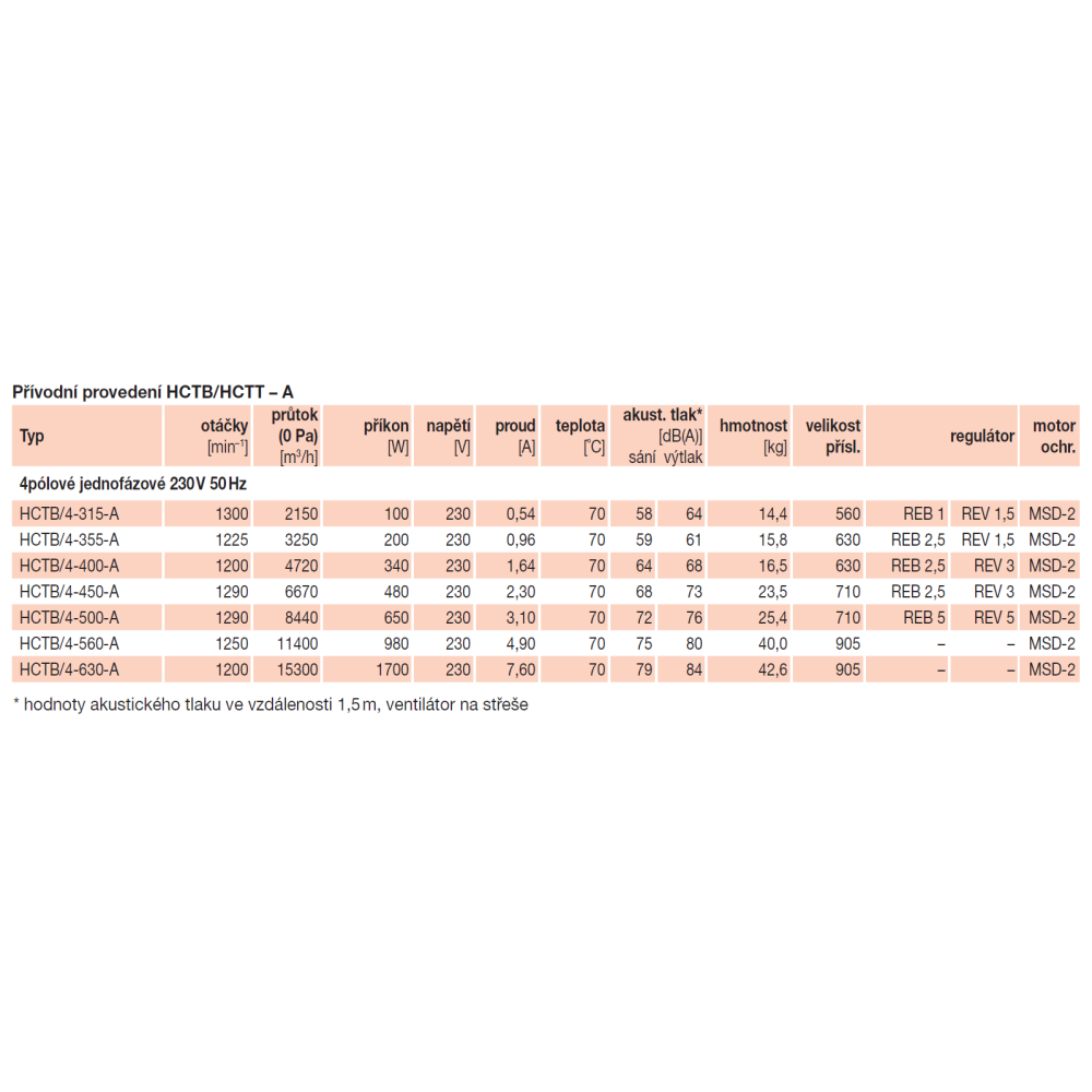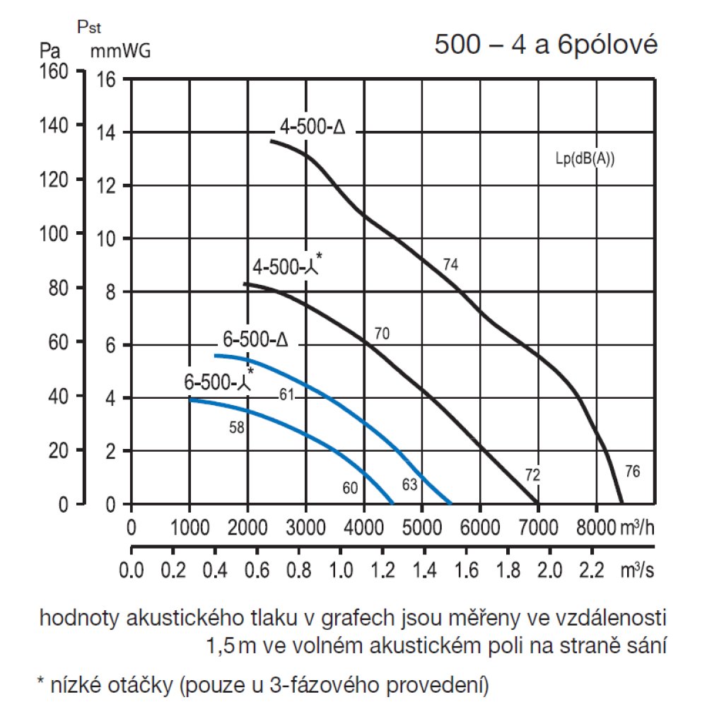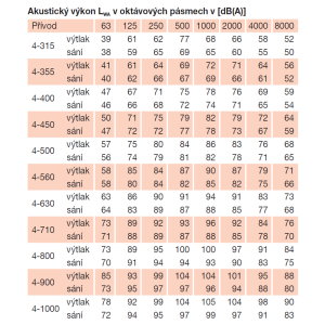 emitovaný ventilátorem je uveden v tabulkách jako hodnoty akustického tlaku ve vzdálenosti 1,5 m, měřený ve volném akustickém poli.