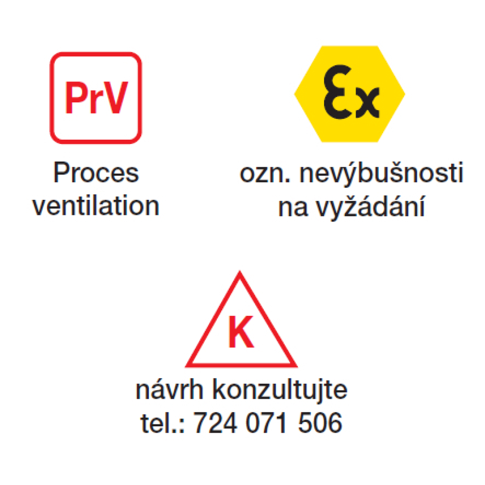 je pro přívod nebo odvod ve smyslu šipky na skříni ventilátoru. Při opačném směru je nutno změnit pořadí fází.