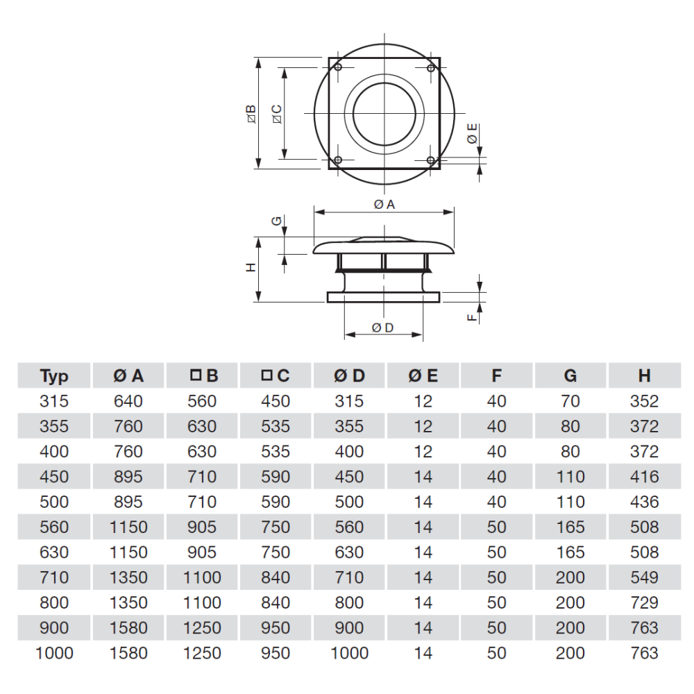 je konstruována pro horizontální výfuk vzdušiny. Podstavec ventilátoru je z ocelového pozinkovaného plechu, galvanicky pokovené jsou i držáky, mřížka a šrouby. Stříška ventilátoru je z Al plechu. Motor ventilátoru je uložen v proudu vzdušiny.