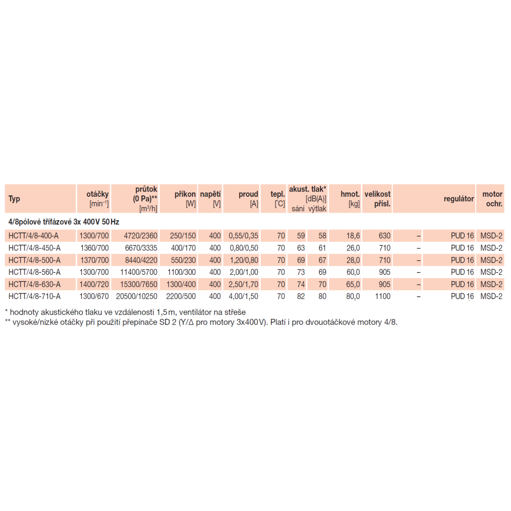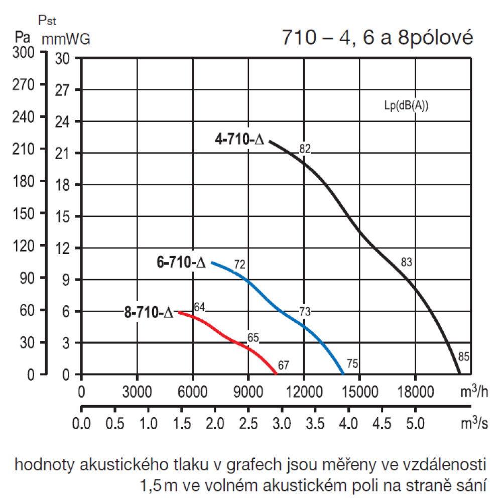 emitovaný ventilátorem je uveden v tabulkách jako hodnoty akustického tlaku ve vzdálenosti 1,5 m, měřený ve volném akustickém poli.