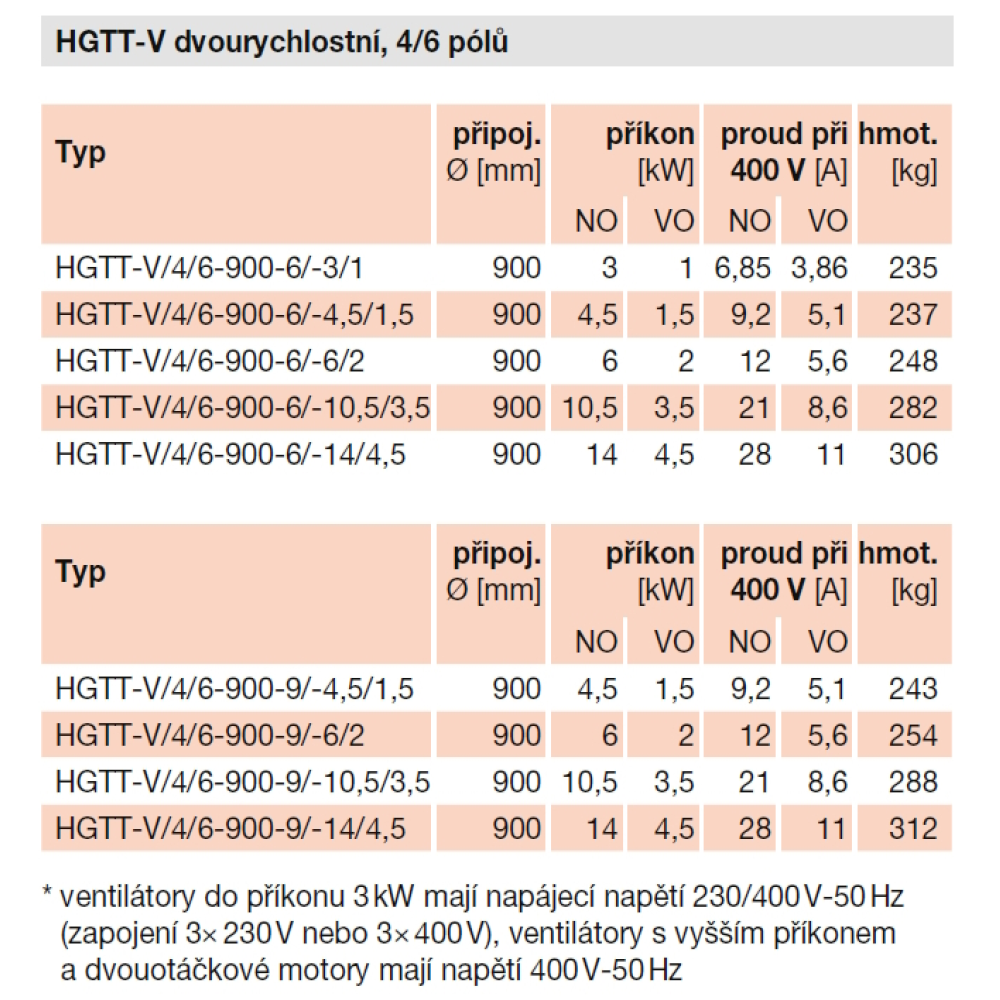 Podstavec i skříň ventilátoru jsou vyrobeny z ocelového plechu opatřeného antikorozní ochranou. Ventilátory jsou vybavené třífázovým 230/400 nebo 400 V / 50 Hz motorem, mají krytí IP55 a jsou vhodné pro provoz s teplotou vzduchu až 40 °C.