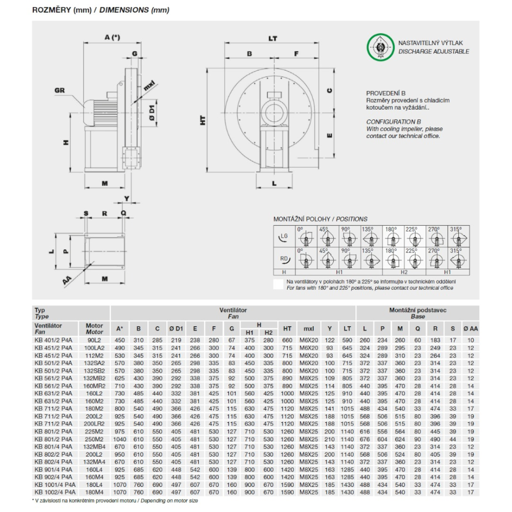 Jednostranně sací radiální ventilátory pro transport drobného materiálu a pneumatickou dopravu v průmyslovém prostředí.
