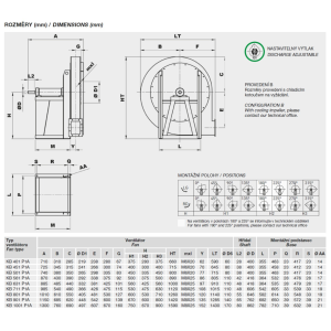 Jednostranně sací radiální ventilátor s motorem na řemen. Vyroben z ocelového plechu chráněného kataforezním základním nátěrem a polyuretanovým lakem. Navržen pro trvalý provoz, teplota přepravované vzdušiny od -20 °C do +60 °C.