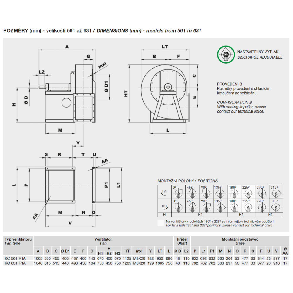 • vysokoteplotní provedení (až do 300 °C, provedení B s chladicím kotoučem)