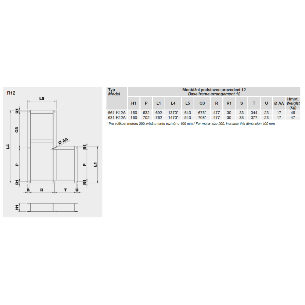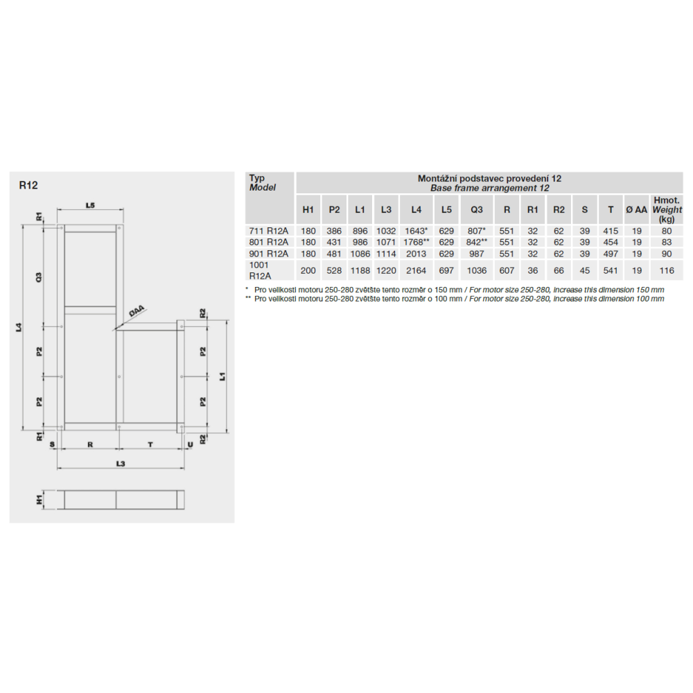 • PROVEDENÍ 12: Obsahuje motor, řemenice, řemeny a ochranný kryt. Motor umístěný na montážním podstavci.