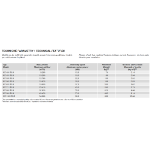 2, 4 nebo 6pólové, IE 3 s vysokou účinností (od 0,75 kW může být motor IE 2 a řízen frekvenčním měničem), třífázové provedení 230/400 V, 50 Hz do velikosti motoru 132. Pro velikosti motoru nad 132 400/690 V, 50 Hz. Krytí IP55, izolace třídy F.