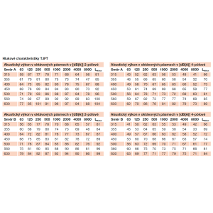 emitovaný ventilátorem je uveden v tabulkách. Akustický tlak měřen ve vzdálenosti 3 m ve volném poli.