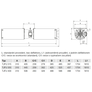 emitovaný ventilátorem je uveden v tabulkách. Akustický tlak měřen ve vzdálenosti 3 m ve volném poli.