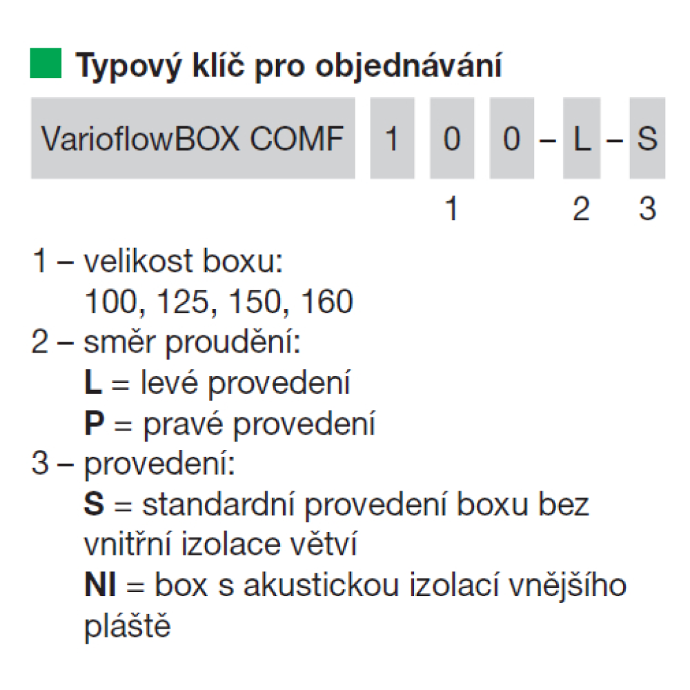 V pozinkované skříni se snímatelným revizním víkem jsou umístěny dva regulátory průtoku pro přívod a odvod vzduchu do větraného prostoru. Pro připojení na kruhové potrubí je box vybaven čtyřmi kruhovými hrdly, která jsou opatřena břitovým těsněním. Klapka umístěná v boxu má v uzavřeném stavu těsnost třídy 2 dle EN1751. Ovládací servopohony jsou opatřeny termo-anemometrickým snímačem průtoku vzduchu. Skříň boxu opatřena upínacími profily se čtyřmi oválnými otvory pro potřeby montáže na stěnu nebo strop.