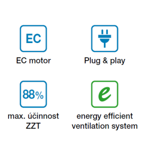 Das Gerät enthält zwei Radialventilatoren mit vorwärts gekrümmten Schaufeln mit EC-Motor.
