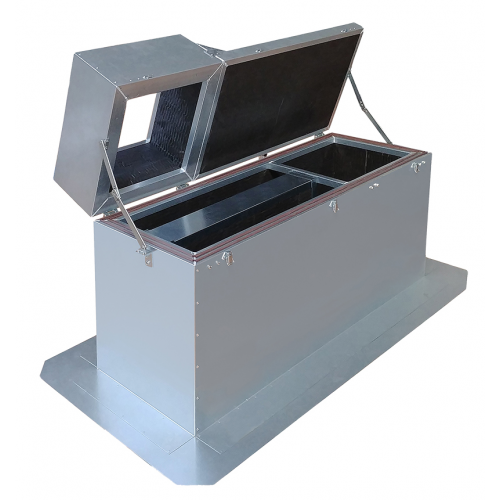 ist aus verzinktem Stahlblech gefertigt. Es ist mit schwarzer Epoxidfarbe beschichtet. Alle Modelle sind mit einem Schutznetz gegen kleine Vögel ausgestattet.